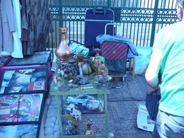 Vi daqueles curiosos que perguntam timidamente os preços após o que seguem caminho sorrateiramente como que envergonhados por nada comprarem; vi os “conhecedores da coisa” que acham sempre o preço exagerado dada a “qualidade” do objecto; os habituais que todos os sábado lá estão procurando novidades ou alguma peça que ainda lhes falte naquela colecção que há anos vêm fazendo; também os viciados que por lá passam às terças e sábados e que nunca compram nada; e eu e outros como eu que só lá vão passear. Também vi uma velha vendendo rendas de linha para ajudar a pagar a renda da casa e vi um velho a vender uns cobres numa tentativa de arranjar umas massas.
