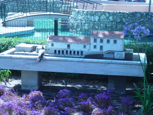 Miniatura do moínho de maré de Corroios, em exibição no jardim no Seixal.