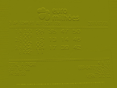 Mesmo sabendo da minha falta de sorte nestas tentativas de ganhar dinheiro ao jogo, (é que nem num mixuruco último prémio acerto), voltei a esbanjar 6€uros no euromilhões.